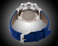 Данная модель часов оснащена швейцарским кварцевым механизмом. Эти часы оснащены такими функциями как: часы, минуты, секунды, счётчик 24 часа, хронограф. Корпус выполнен из полированной стали, и инкрустирован цирконием. Стекло из сапфира с антибликовым покрытием. Задняя крышка корпуса на винтах. Синий циферблат. Маленькая секундная стрелка расположена на «6 часов», счётчик 24 часа на «12 часов». Синий кожаный ремешок с классической застёжкой.